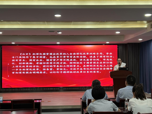 9月4日,為深入學(xué)習(xí)貫徹黨的二十屆三中全會(huì)精神,市引江投資公司黨委邀請(qǐng)市國(guó)資委宣講團(tuán)來(lái)公司開(kāi)展學(xué)習(xí)貫徹黨的二十屆三中全會(huì)精神宣講活動(dòng),公司黨委書(shū)記、董事長(zhǎng)郭星攜領(lǐng)導(dǎo)班子成員及全體黨員員工參加活動(dòng)。