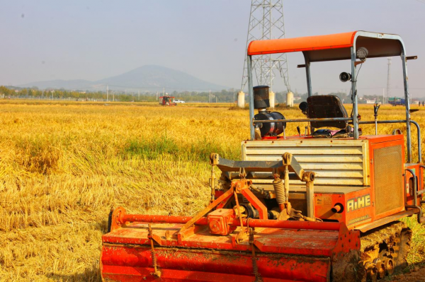 今天恰逢水稻收割的熱鬧場景——一臺臺收割機(jī)正在稻田中歡快地穿梭著,將飽滿的稻穗攬入其中,留下一排排整齊的稻茬……曾經(jīng)的棄土場,如今變成了肥沃的農(nóng)田,孕育出了豐收的果實。